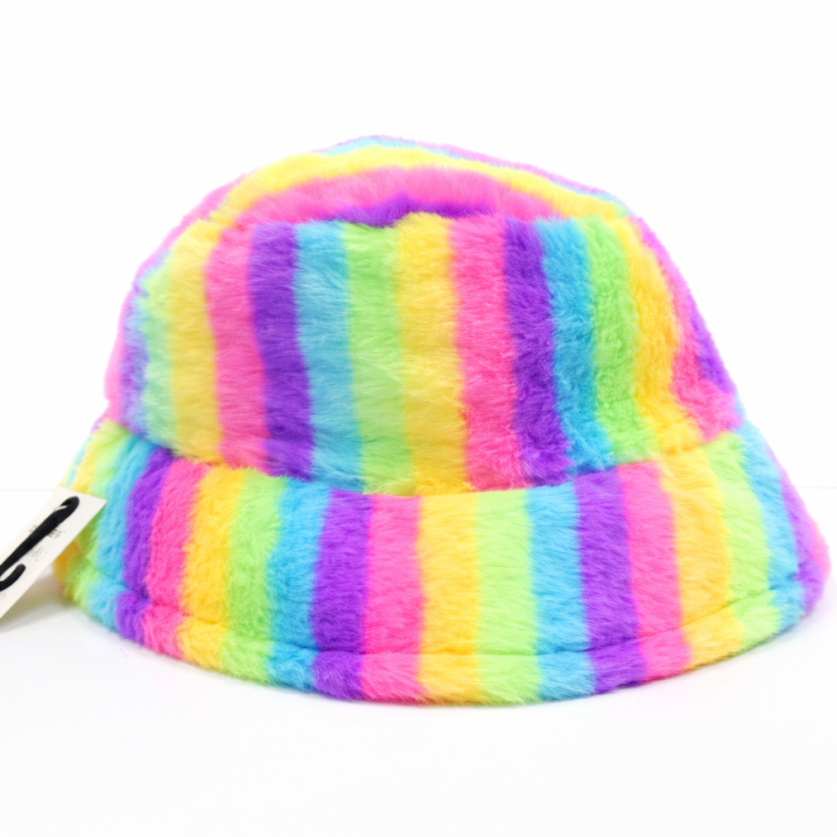 FLUFFY FUR BUCKET HAT RAINBOW PRINT