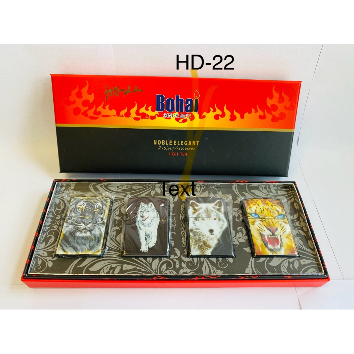 Packaging: Elegant red-and-black gift-style box with 4 lighters included