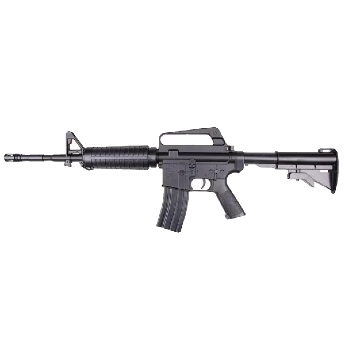 This WELL BB Gun Rifle is a replica of an M4 Rifle, and it is a spring-powered single shot weapon. It fires standard 6mm Airsoft BB pellet but works best with Bulldog 0.12g pellets, but will also work with the Bulldog 0.20g BBs. Most of the rifle is made of ABS plastic and there is an adjustable tactical stock on the gun that can be set to several positions to fit the all size shooters. The cocking handle is situated on the rear of the rifle below the carry handle and is easy and accessible to prime for the next shot. That makes an ideal fun BB gun for young gun fans and will suppy hours of target shooting fun.